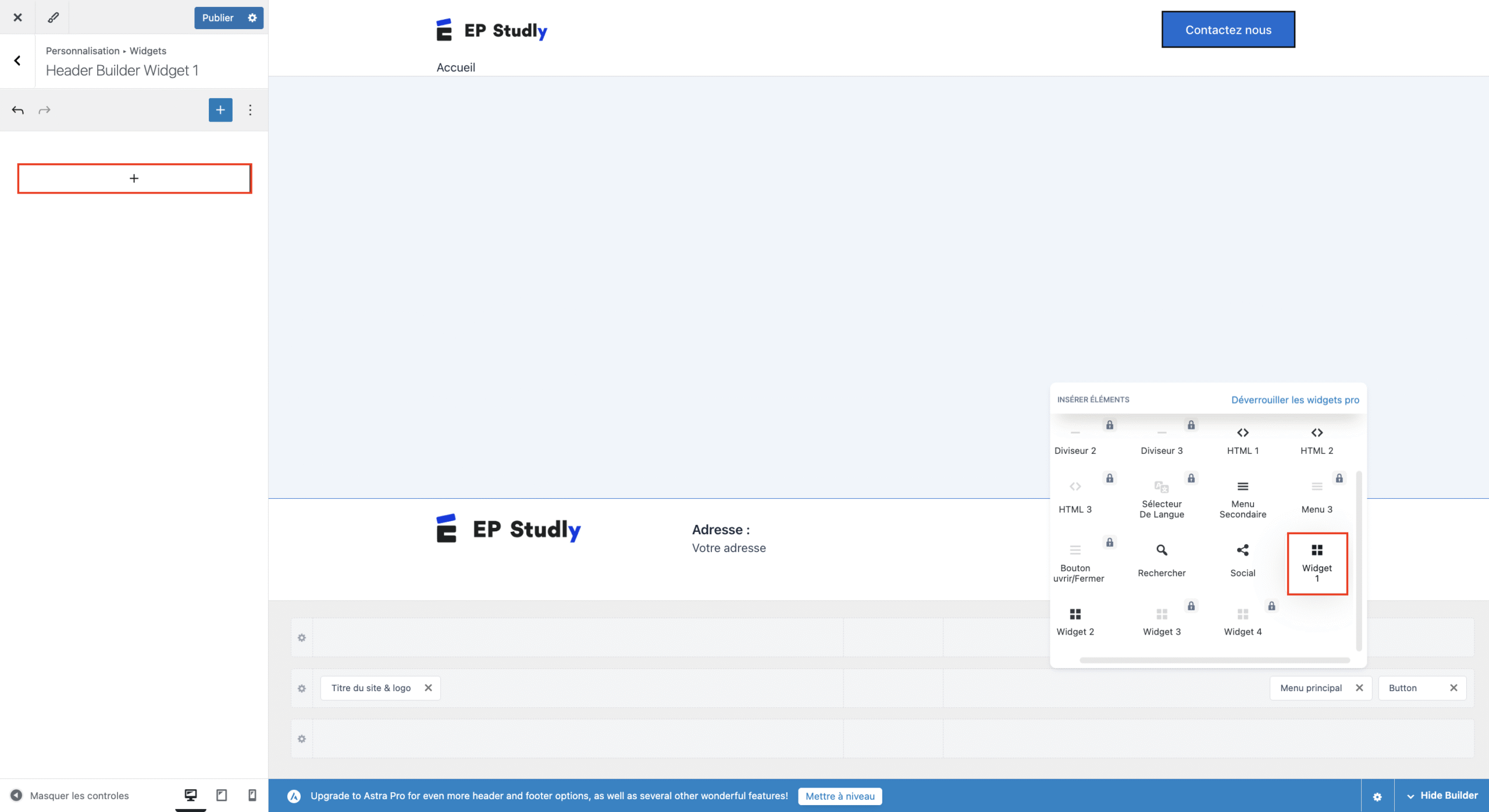 Une fois dans la personnalisation, vous pouvez ajouter un widget dédié.