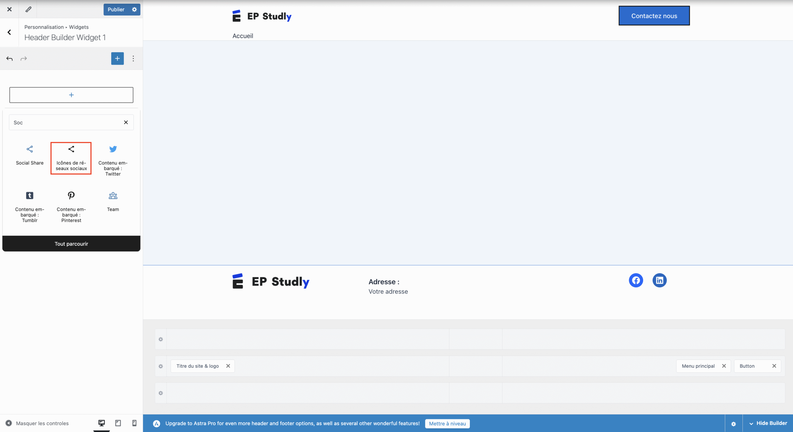 2. Ajouter le widget “Icônes de réseaux sociaux”