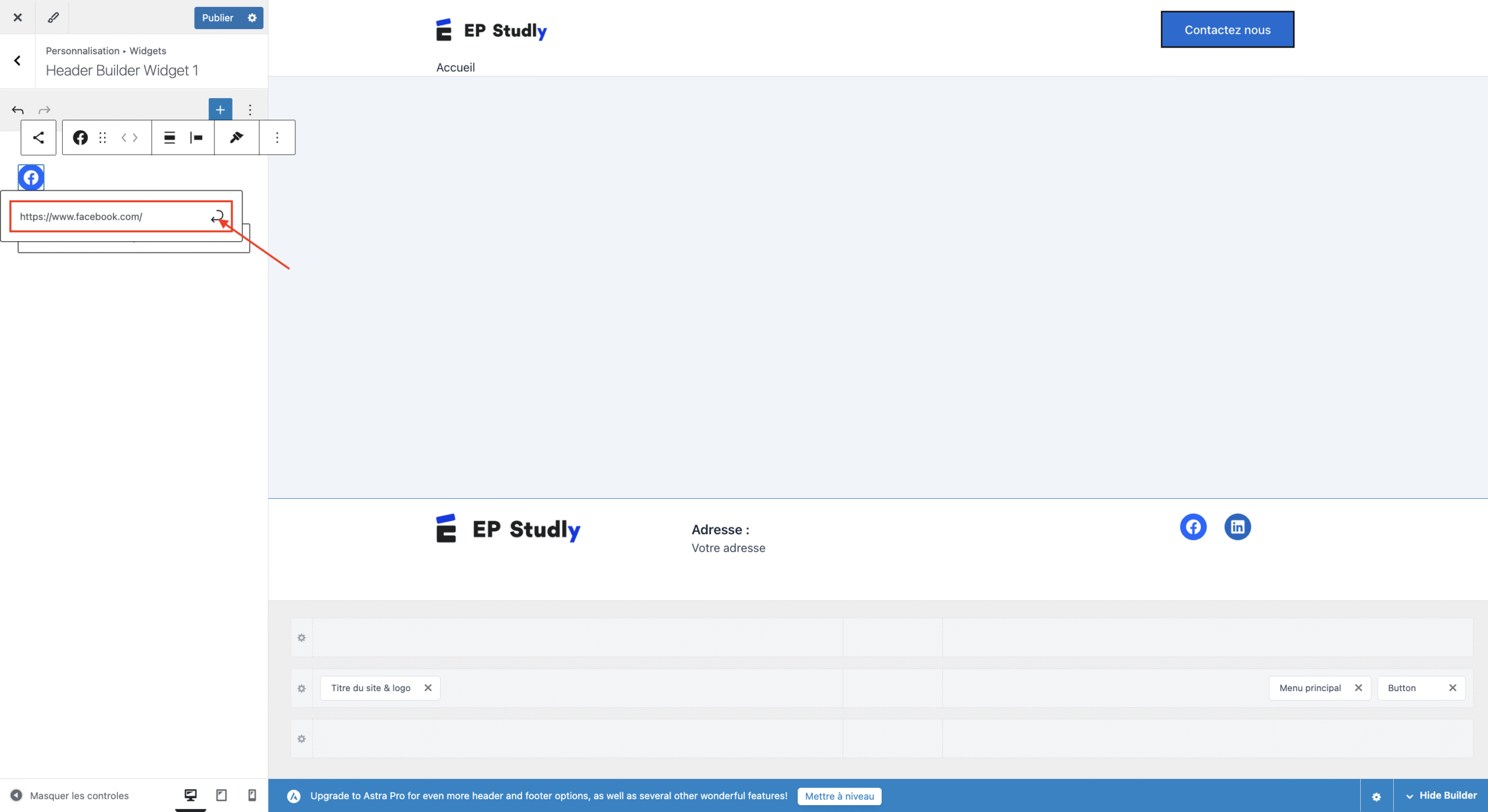 👉 L’objectif : montrer que vous savez activer et configurer les icônes sociales afin que les visiteurs puissent accéder directement aux profils de l’entreprise.