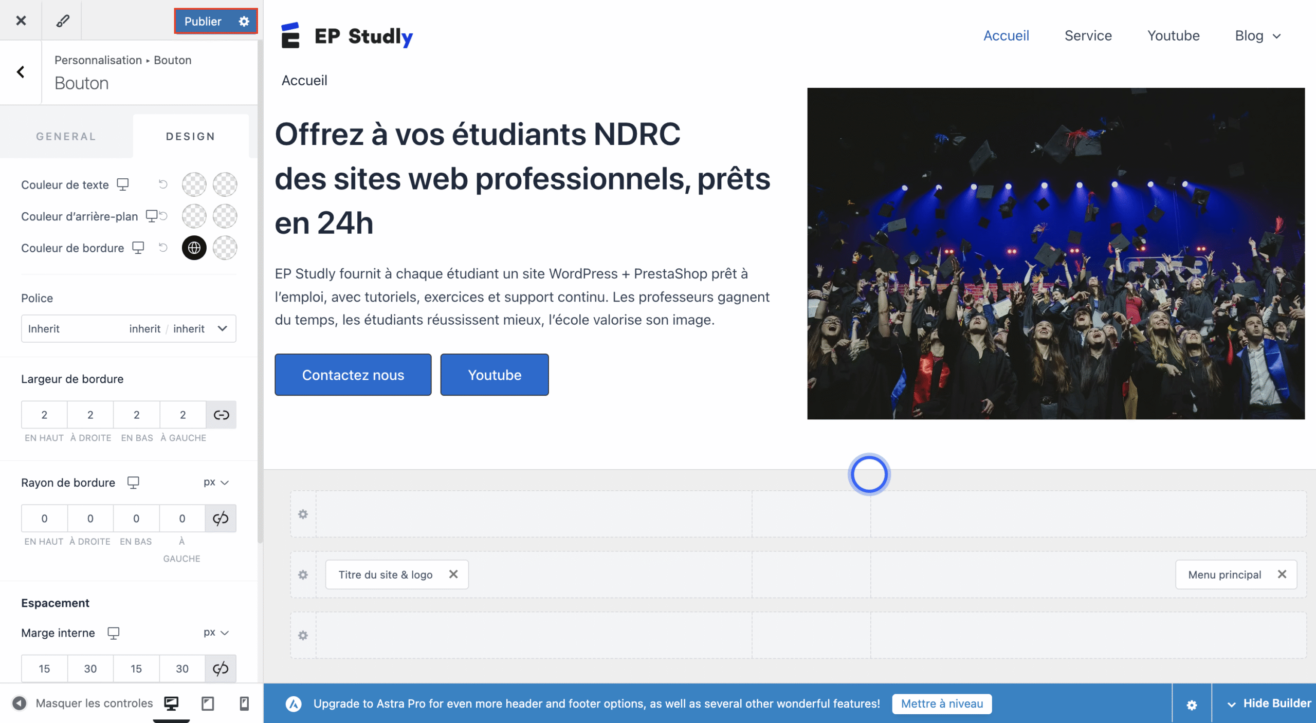 N’oubliez jamais de cliquer sur Publier pour enregistrer vos modifications et vérifier le rendu final en front-office.