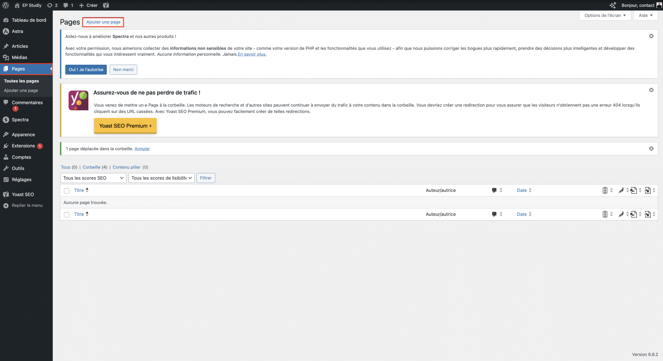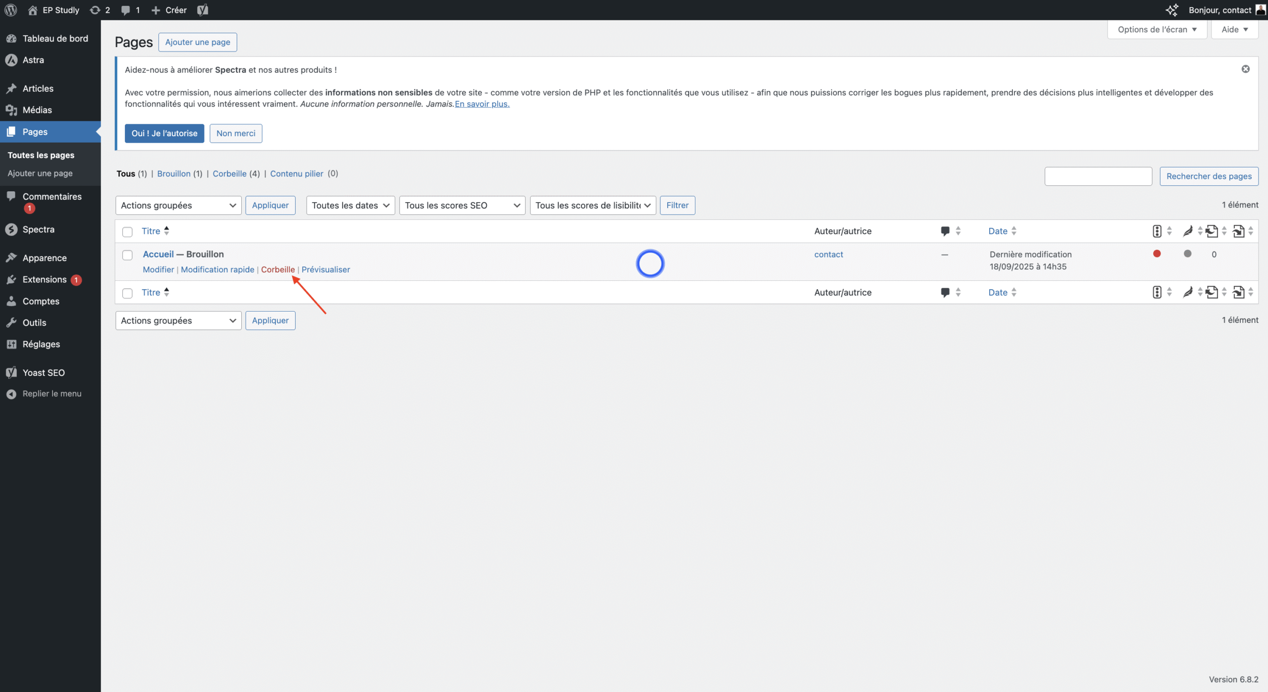 👉 Astuce : une page ou un article supprimé reste dans la corbeille avant d’être définitivement effacé. Vous pouvez donc le restaurer si besoin.