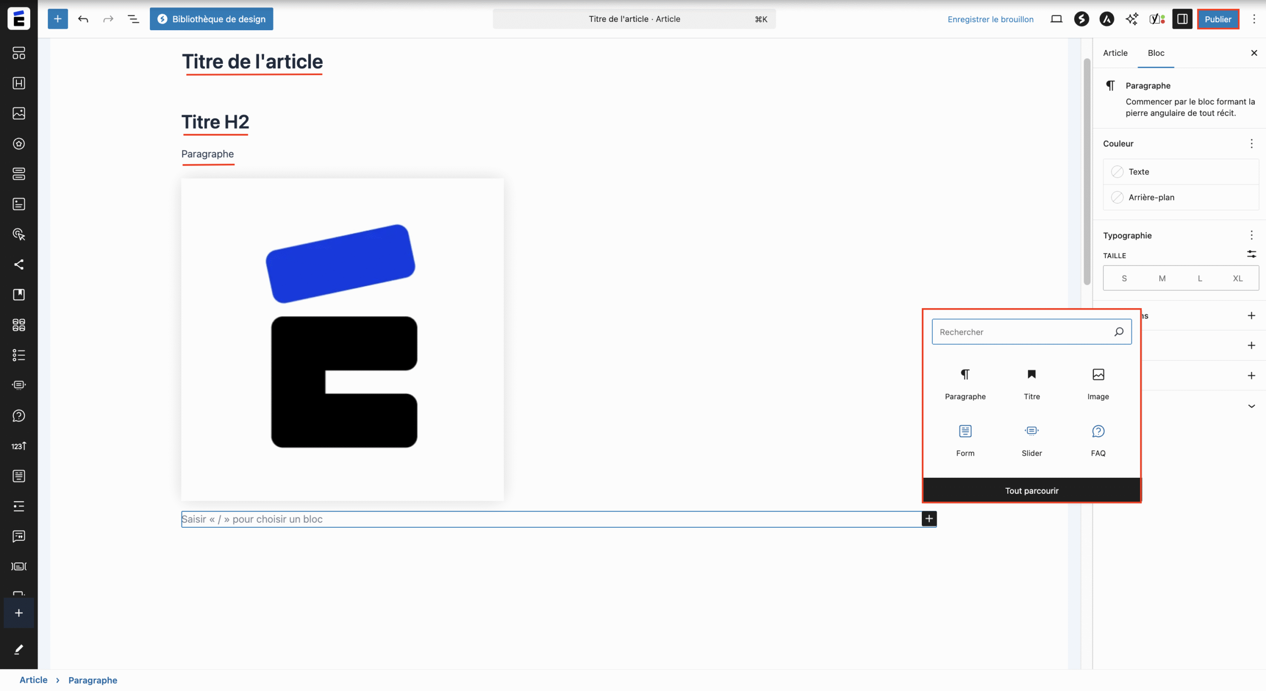 Ces blocs permettent de structurer votre contenu et d’améliorer la mise en page.